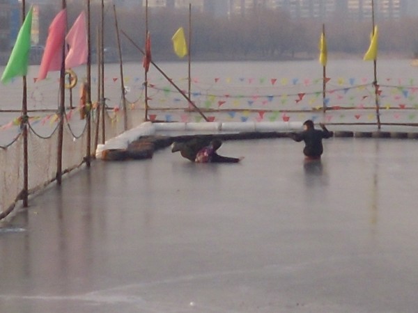 Devinez c’est quoi ? Un toboggan de glace. Le but : faire la plus grande distance possible sur le lac